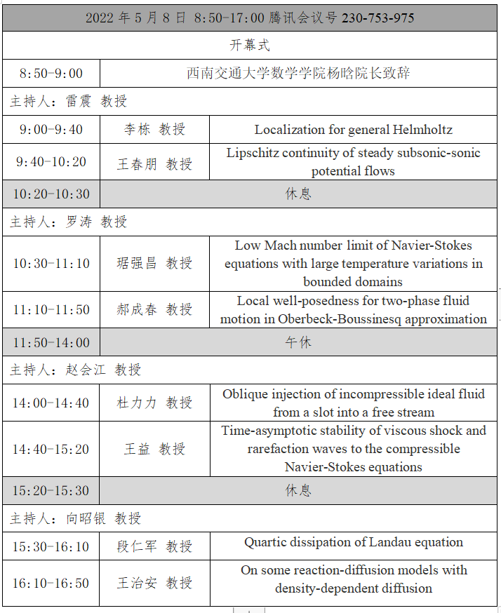 偏微分方程小型研讨会 会议日程表