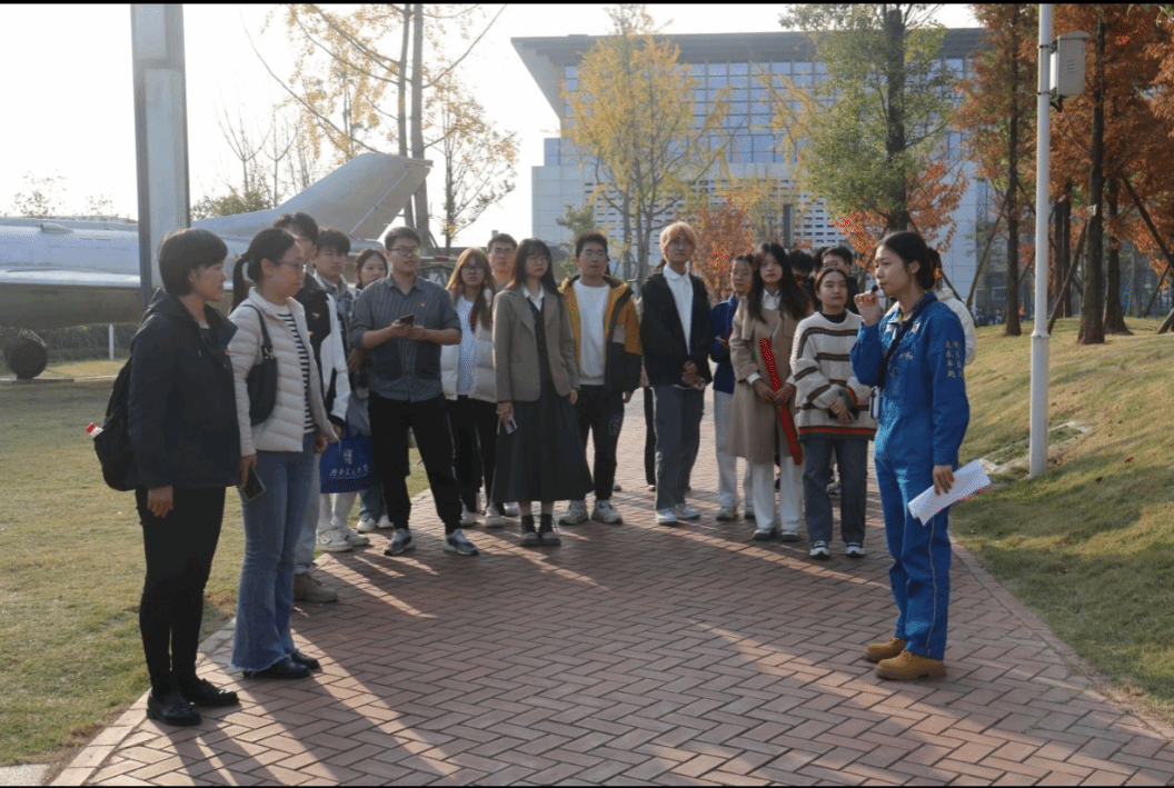 随后,成员们跟随讲解员移步室内展览馆。展览馆以“过去-现在-未来”的时空概念为陈列主线。其中主要展陈的板块有:飞行的探索、飞机与战争、飞机的心脏、飞行原理区、现代空中力量、空天一体新时代。在参观过程中,成员们深入了解了航空科技的发展和应用。航空科技涉及到众多学科领域,这加深了同学们对于交叉学科应用的理解,培养了跨学科思维,同时也激发了成员们强烈的爱国情怀。