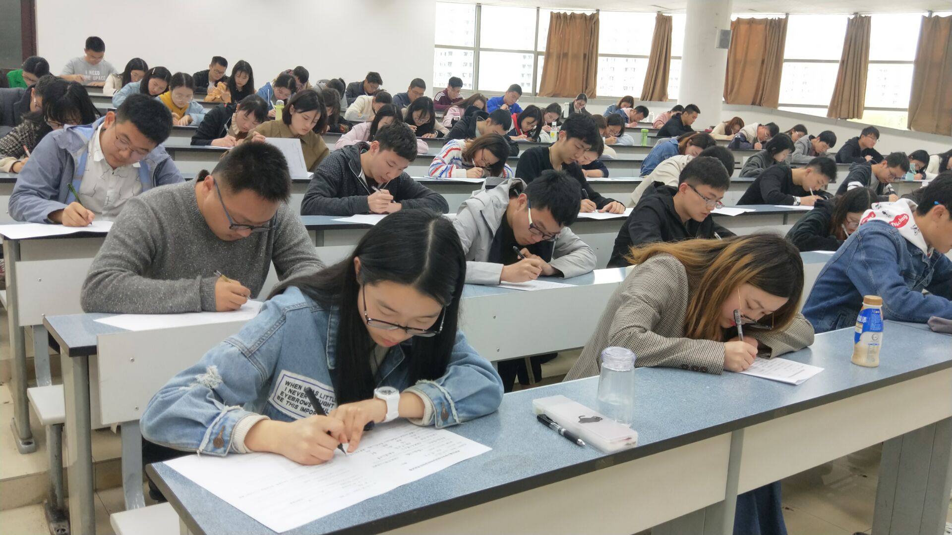 为避免与其他考试时间发生冲突,本次考试的时间从12:30-14:00。12:20左右所有同学已经来到了教室,监考老师安排好考试座位,告知了大家注意事项,五分钟过后,所有同学自觉将资料、手机放在讲台上,老师发放了考试试卷。12:30,考试正式开始,整场考试,同学们全神贯注,非常的认真。