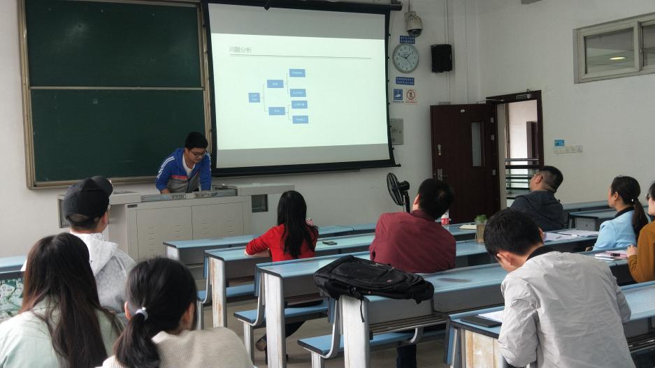 第6组组长潘小东老师,秘书韩帮胜老师,和组员陈树伟老师、邓丽老师、陈章友老师参加了本次本科毕业论文的中期检查。