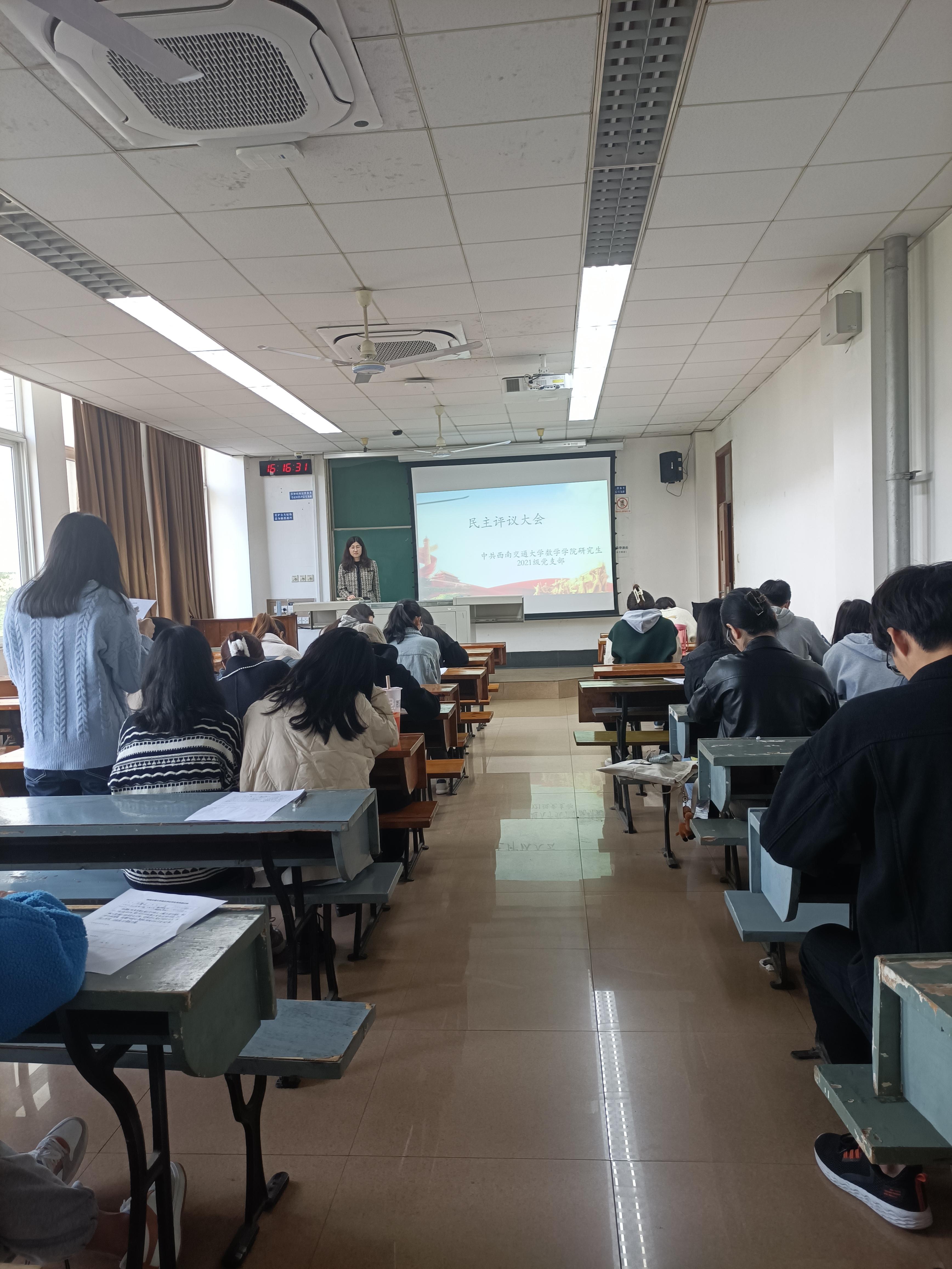 2021级研究生党支部于2022年3月7日下午4:00,在J4322召开党组织生活会暨民主评议党员大会,旨在开展批评与自我批评以及民主评议工作,提高党员的党性修养和思想政治素养。此次大会由支部书记王乐同志主持。