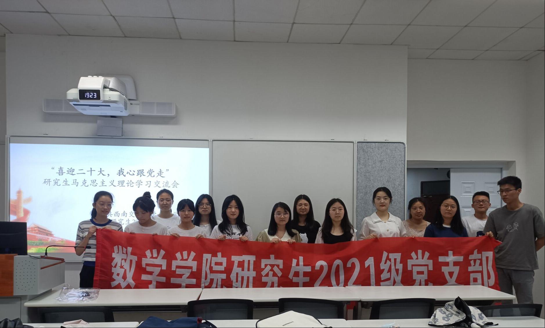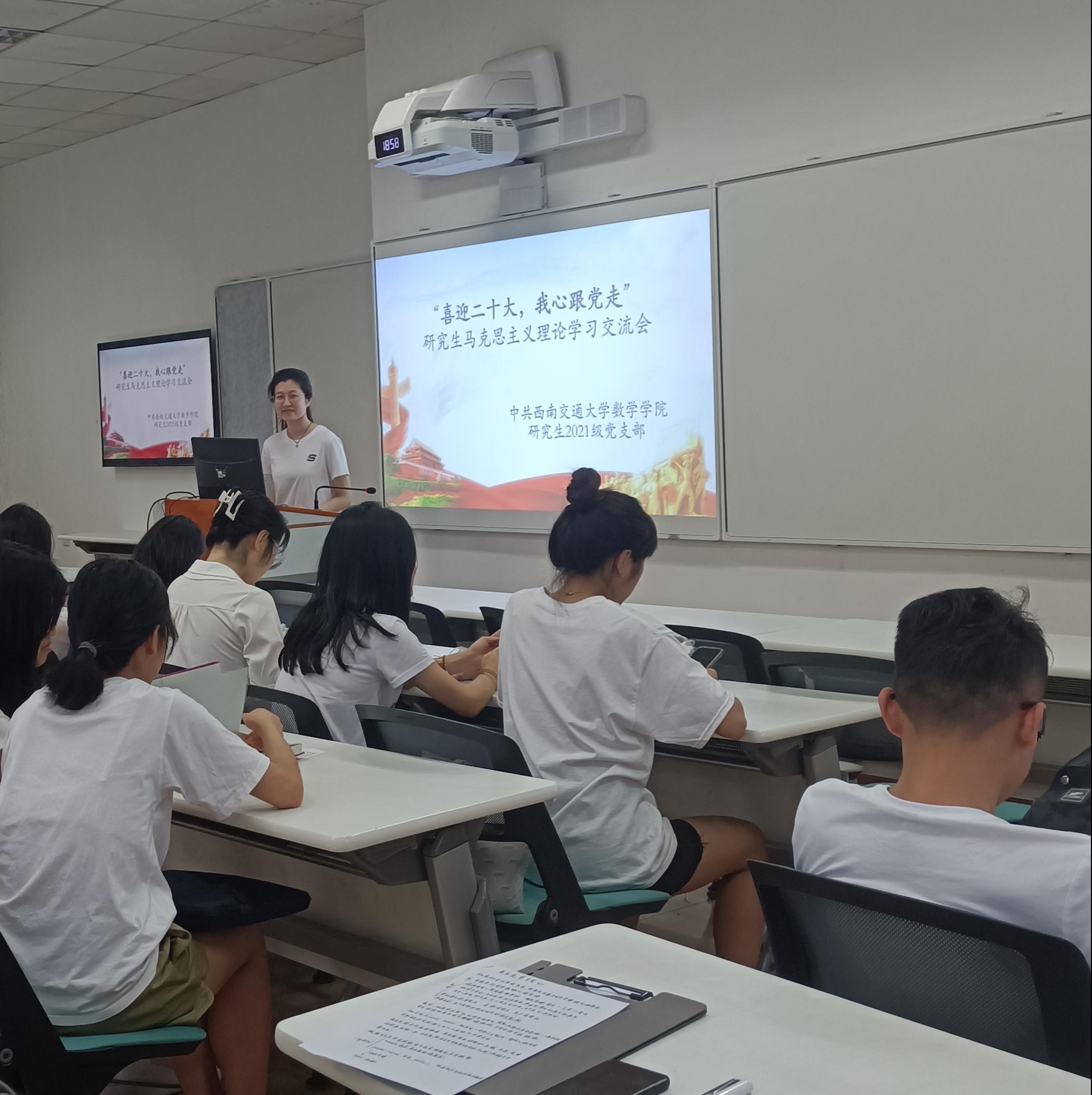 研究生2021级党支部在J4118教室开展以“喜迎二十大,我心跟党走”为主题的“领航先锋”工程之马克思主义理论学习交流会,此次大会由党支部书记王乐同志主持。