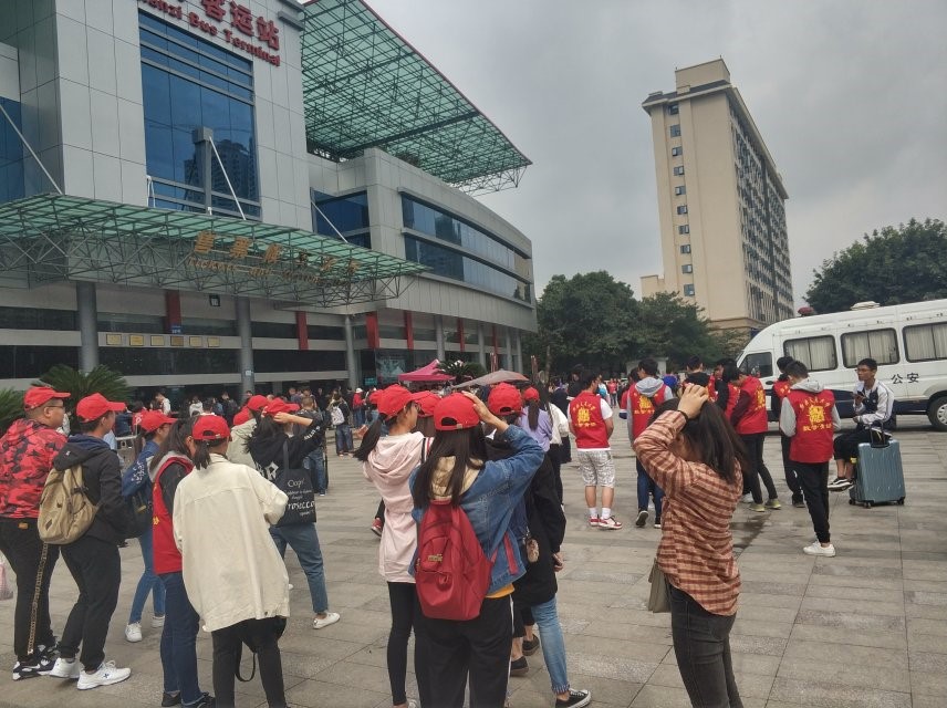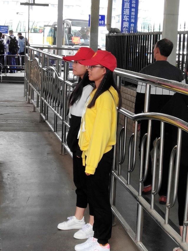 到达客运站后,首先有负责携带衣服的同学给大家分发印有“数学青协”字样的红马甲和小红帽,大家穿戴整齐,以增强辨识度,方便大家在工作中互相联络交流。随后由客运站工作人员给大家一一分配工作,志愿者们被分为三组,第一组负责打扫卫生,第二组负责帮助乘客检票,第三组站岗指路。