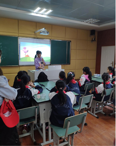 志愿者们来到希望小学后,根据校方的安排,和4年级4班35位小朋友一起开展这次活动。在老师的帮助下,小朋友和志愿者们分为六个小组,一起学习有关春种和环保的知识。小组内,小朋友们和志愿者通过自我介绍,很快就熟悉了。
