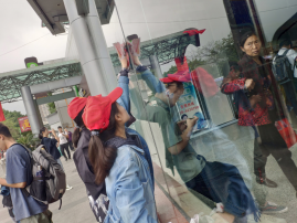 清洁组的成员们一直忙碌在客运站大厅的各个角落。花架旁,空调边,玻璃的倒映里,都可以看到他们的身影。这些同学们的劳动为乘客们提供了一个干净整洁的候车环境。