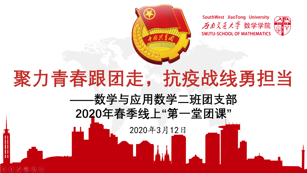 应用数学2019级2班团支部2020年春季第一堂团课以视频会议的形式,于3月12日14:30如期开展。团课以“聚力青春跟团走,抗疫战线勇担当”为主题,号召支部团员坚决为打赢防疫阻击战而奋斗。团课由团支书张涵兹主持,支部23名团员按时参加,认真学习。91吃瓜