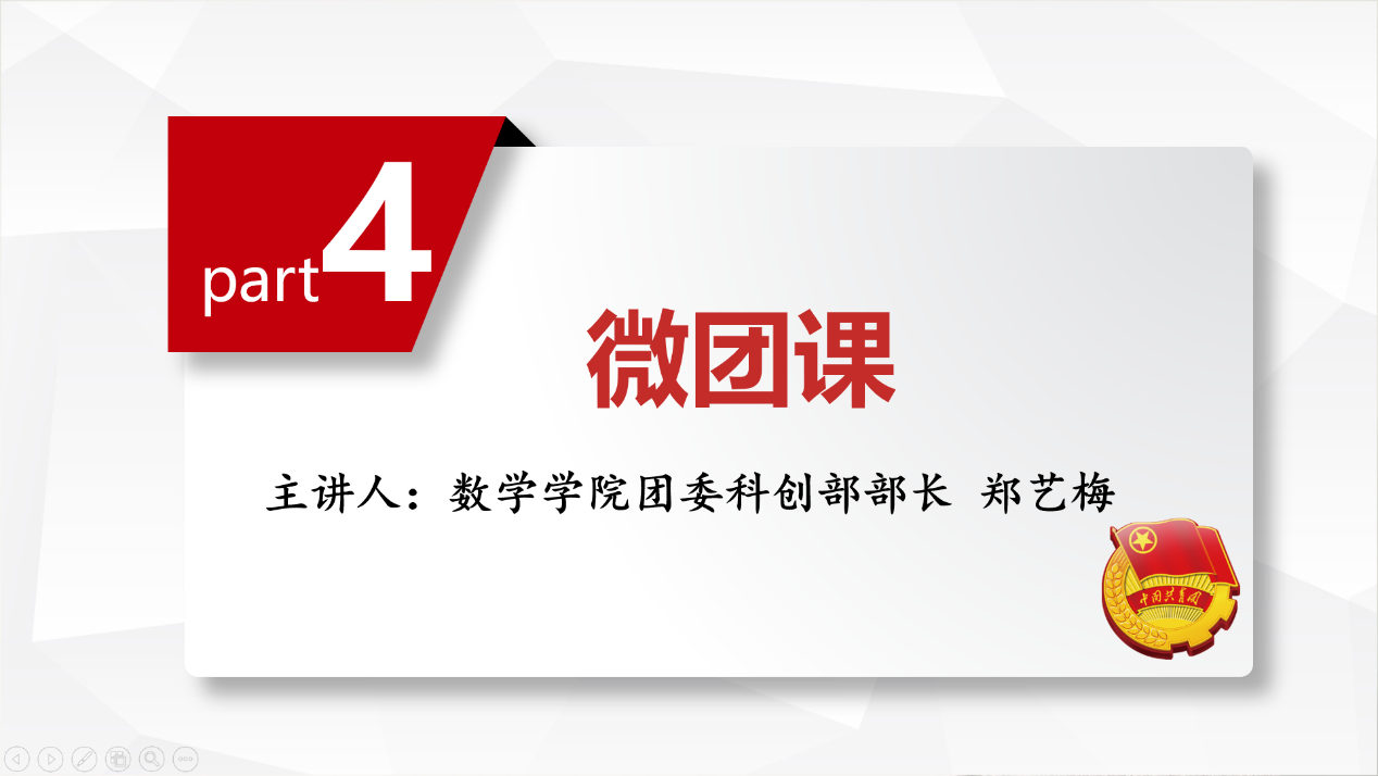 团委科创部部长郑艺梅参加并做微团课教育,组织部副部长何未参加团课。