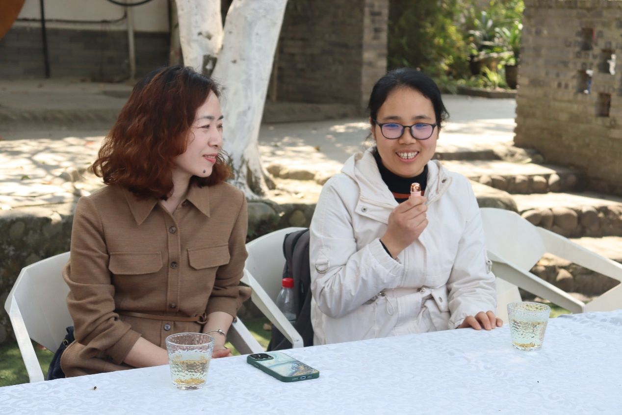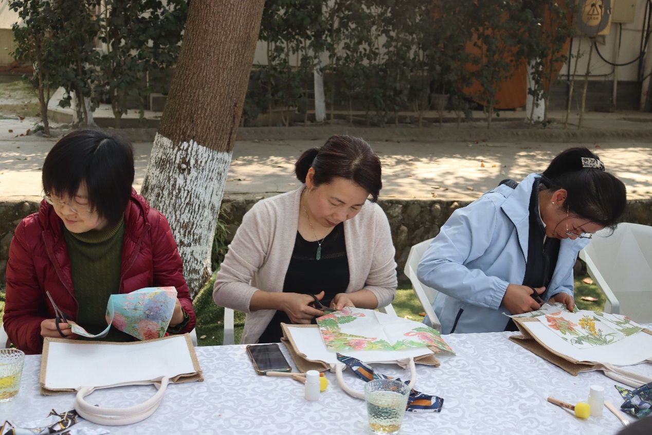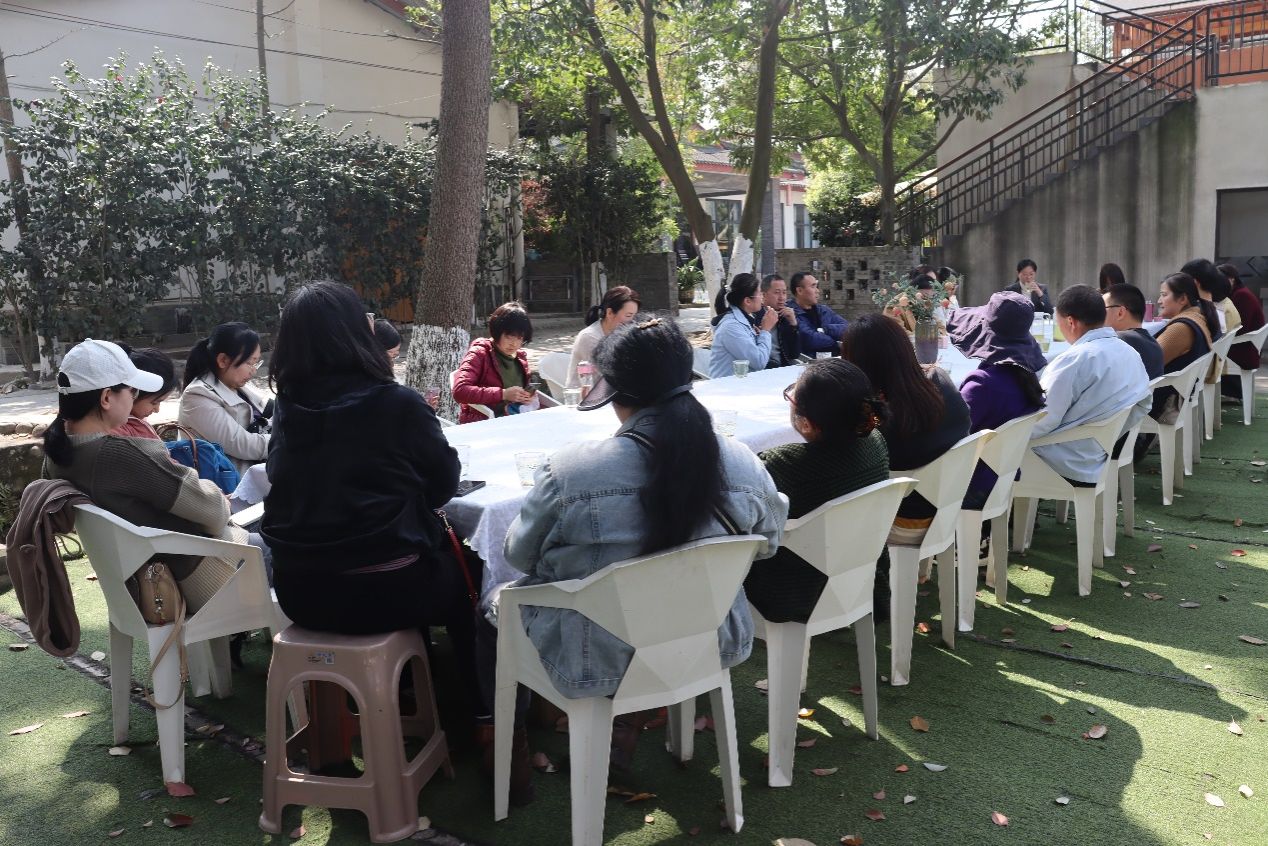 故事会结束后,老师们在编织手工、赏花踏青、交谈品茗中共度了下午的闲暇时光。