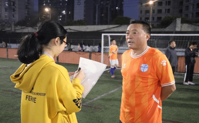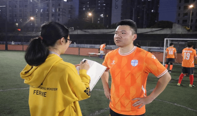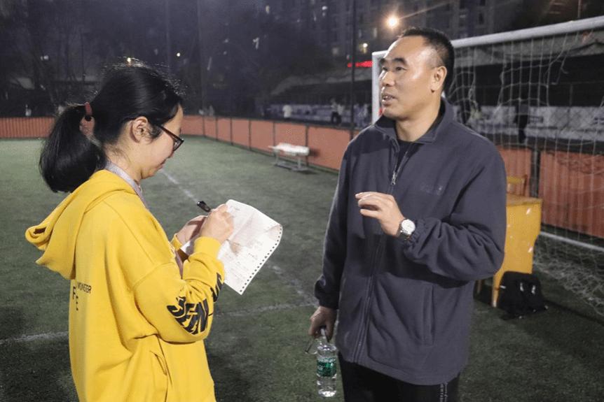 的运动员们,教职工足球队队长彭皓老师肯定了对手的实力:“机械学院的队员实力很强,每个队员的实力都很均衡,这支队伍潜力巨大。”同时,彭老师也向球队成员的积极参与和辛苦付出表示感谢。