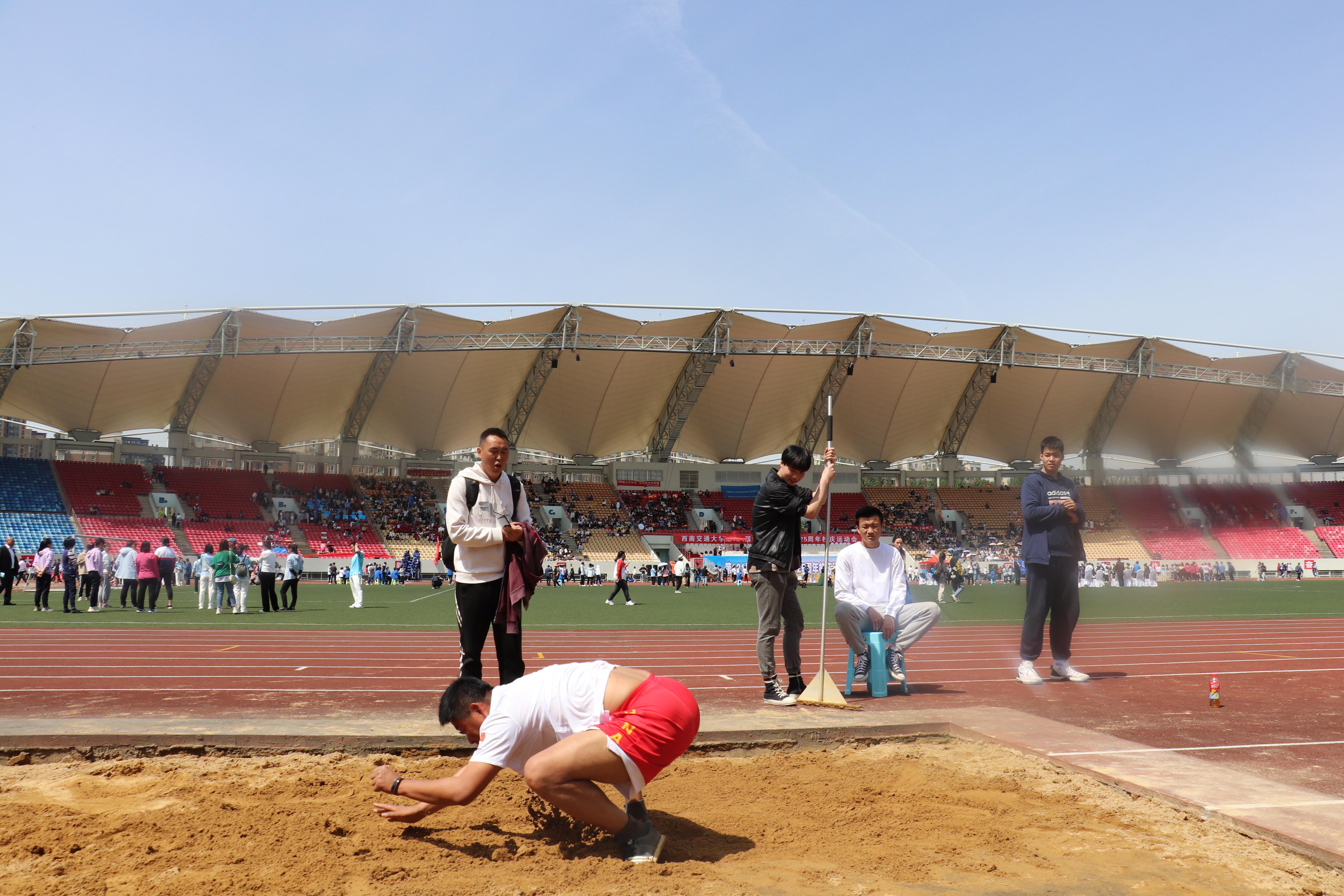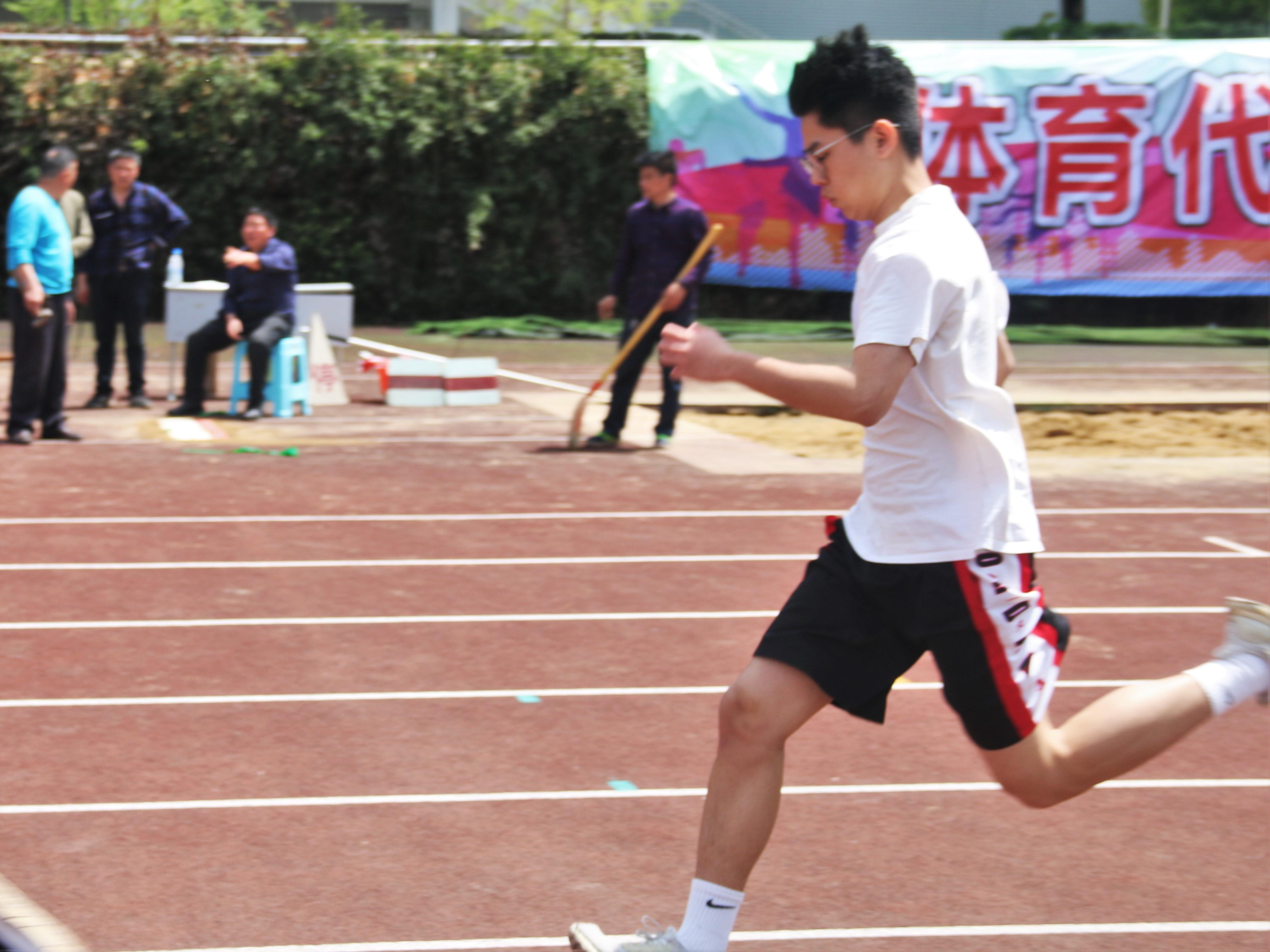 每一步腾跃,爆发的不只是力量,还有激情;每一步腾跃,迸发的不只是速度,还有斗志;每一步腾跃,挥洒的不只是汗水,还有青春!三级跳赛场上的每一小步,都是向最后终目标迈进的一大步。蓄势待发,跨步一跳,腾空一跃,奔向前方。