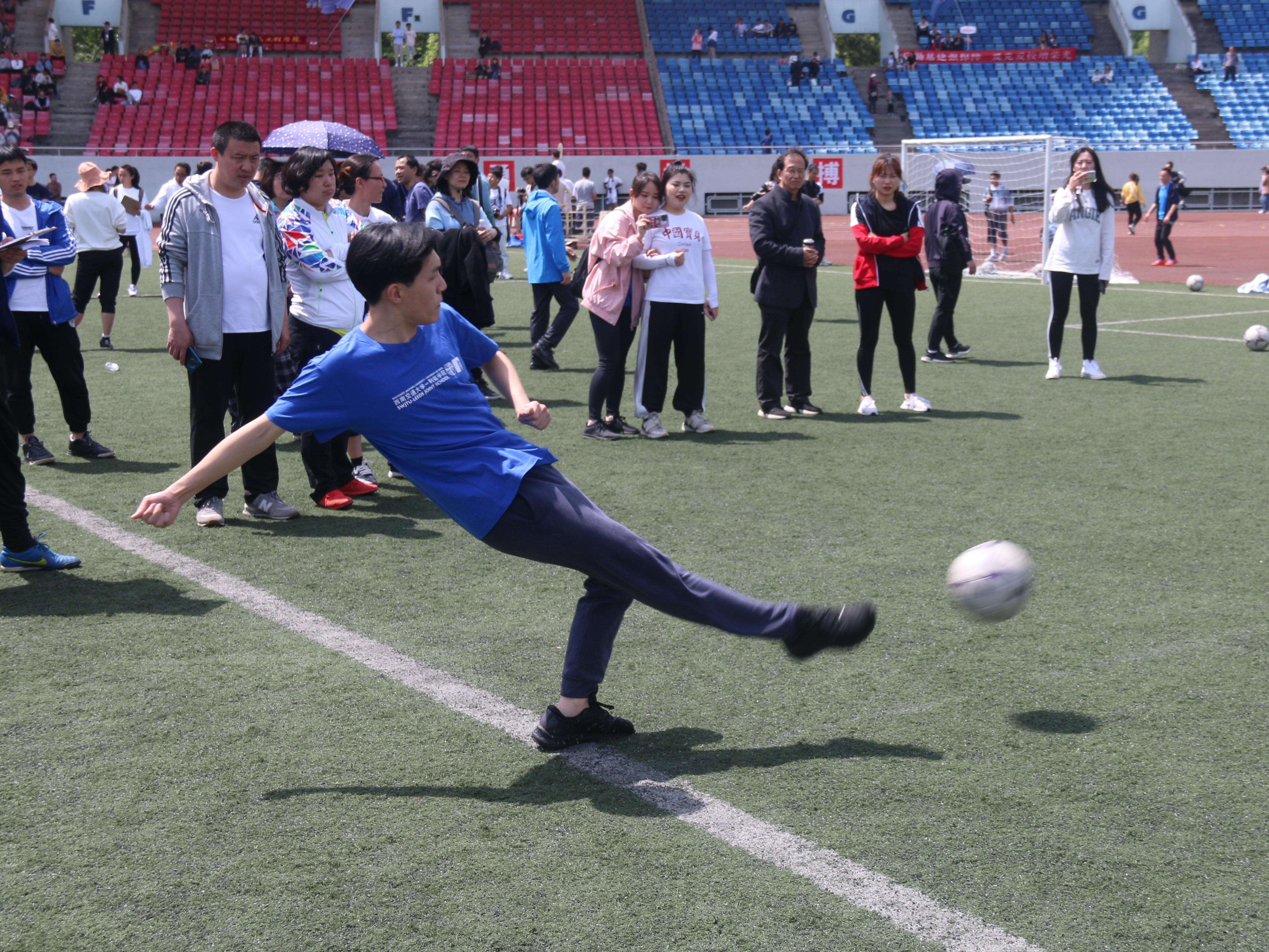 绿茵场上跃动青春鼓点,似火年华我们启航扬帆,赛场上拼搏,只为展现最完美的自己。你积蓄全身的力量,凝神于那完美的一掷。赛场上的你破釜沉舟一战,神闲气定,披荆斩棘,只因沉醉于蓝天中划过的优美弧线。