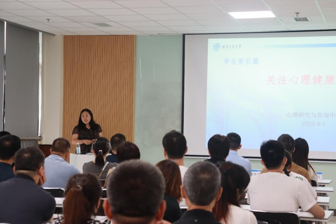 而后,来自心理研究与咨询中心的张学伟副教授为参会家长带来了题为《关注心理健康——学生家长篇》的精彩讲座。张老师不仅向家长介绍了情绪、抑郁等相关概念,并从大学生的身心特点出发,深入剖析心理问题出现的原因。同时张老师针对压力及相应的心理问题给出了针对性的策略,详尽介绍了实用的亲子沟通技巧。
