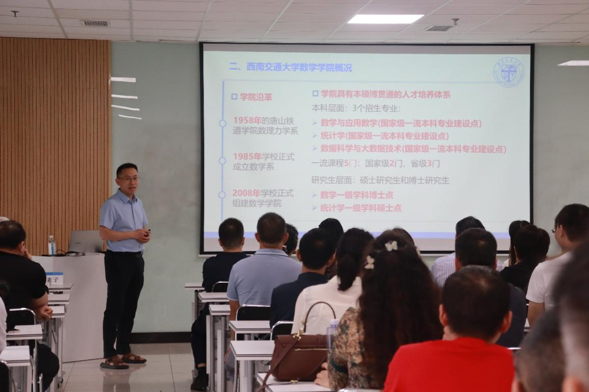 和三个国家级一流本科专业:数学与应用数学、统计学、数据科学与大数据技术。从专业培养方案、学生毕业去向、专业前景及人才培养情况进行全方位的解读。同时,潘小东副院长介绍了数学拔尖班的选拔方式以及培养模式。随后,潘小东副院长从学院各个专业学生到国内外高校进一步深造作为切入点,展示了目前第四次工业革命下数学的使命担当,并向家长强调需要重点关注的问题。
