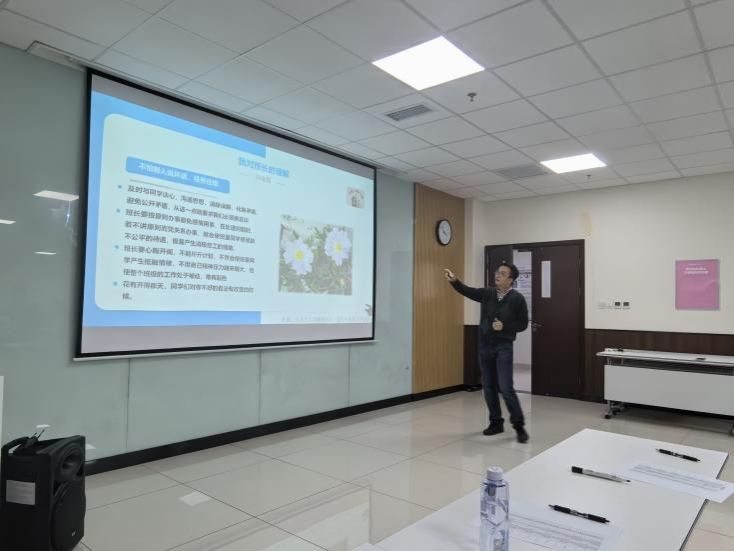活动第二项,力学与航空航天学院党委副书记孔祥彬论述了班委在自身成长和就业方面所能具备的优势。随后他组织各班班委讨论了以下问题:“工作中遇到的最难的事情是什么?”、“如何解决遇到的难题?”,并邀请班委代表分享讨论结果。代表们积极地分享了该组的讨论结果及心得体会。此外孔老师还提供了优秀班级案例作为可参考的解决方案,详细地引导各班委思考如何解决困难,呼吁各班委积极解决问题、高效组织活动、建设班级良好学风。班委们纷纷表示收获颇丰,受益匪浅。