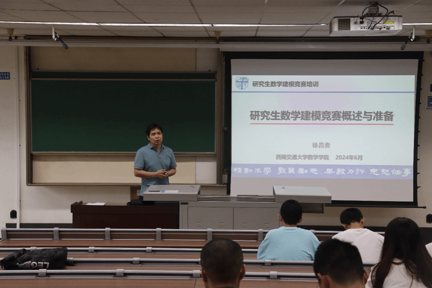 培训开始,徐昌贵老师围绕“研究生数学建模竞赛概述与准备”这一主题,向同学们介绍了赛事的由来及竞赛的时间表与报名流程等基本内容,帮助同学们对研究生数学建模竞赛进行初步了解,同时,他根据近年该竞赛赛题提出了培训建议,引导学生们找对方向,做好充足的赛前准备,并在数学建模竞赛的资料参考方面向大家进行了推荐与解惑,为同学们在研究生新阶段下,面对新高度的数学建模竞赛提供了基本的指导。