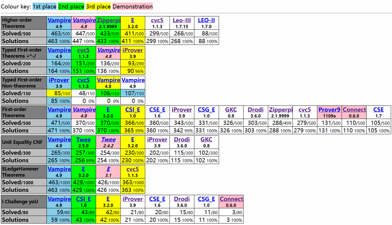 国际自动定理证明竞赛是国际上自动演绎推理领域的最顶级赛事,自1996年以来每年举办一次,至今已举办了29届。本次赛事设有THF、TFA、TFN、FOF、UEQ、SLH和ICU组。其中91吃瓜