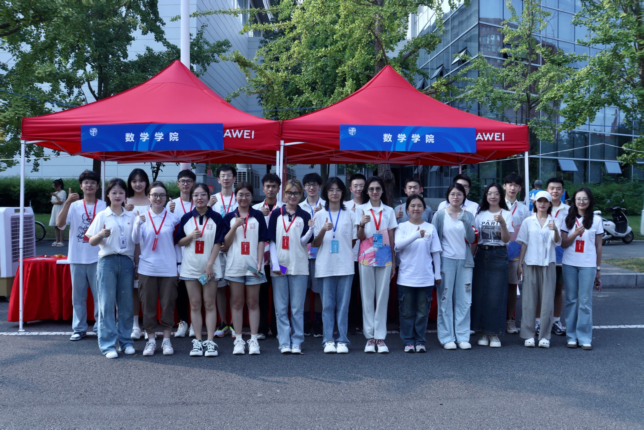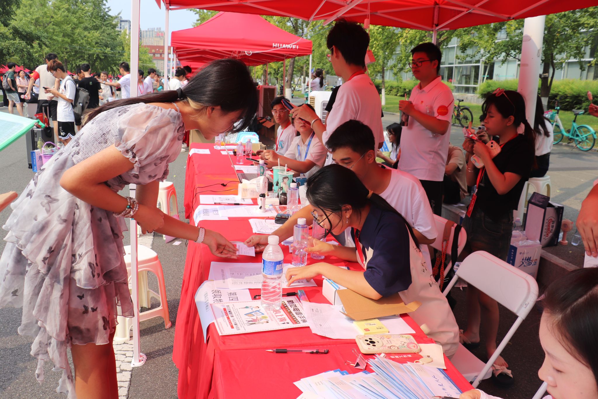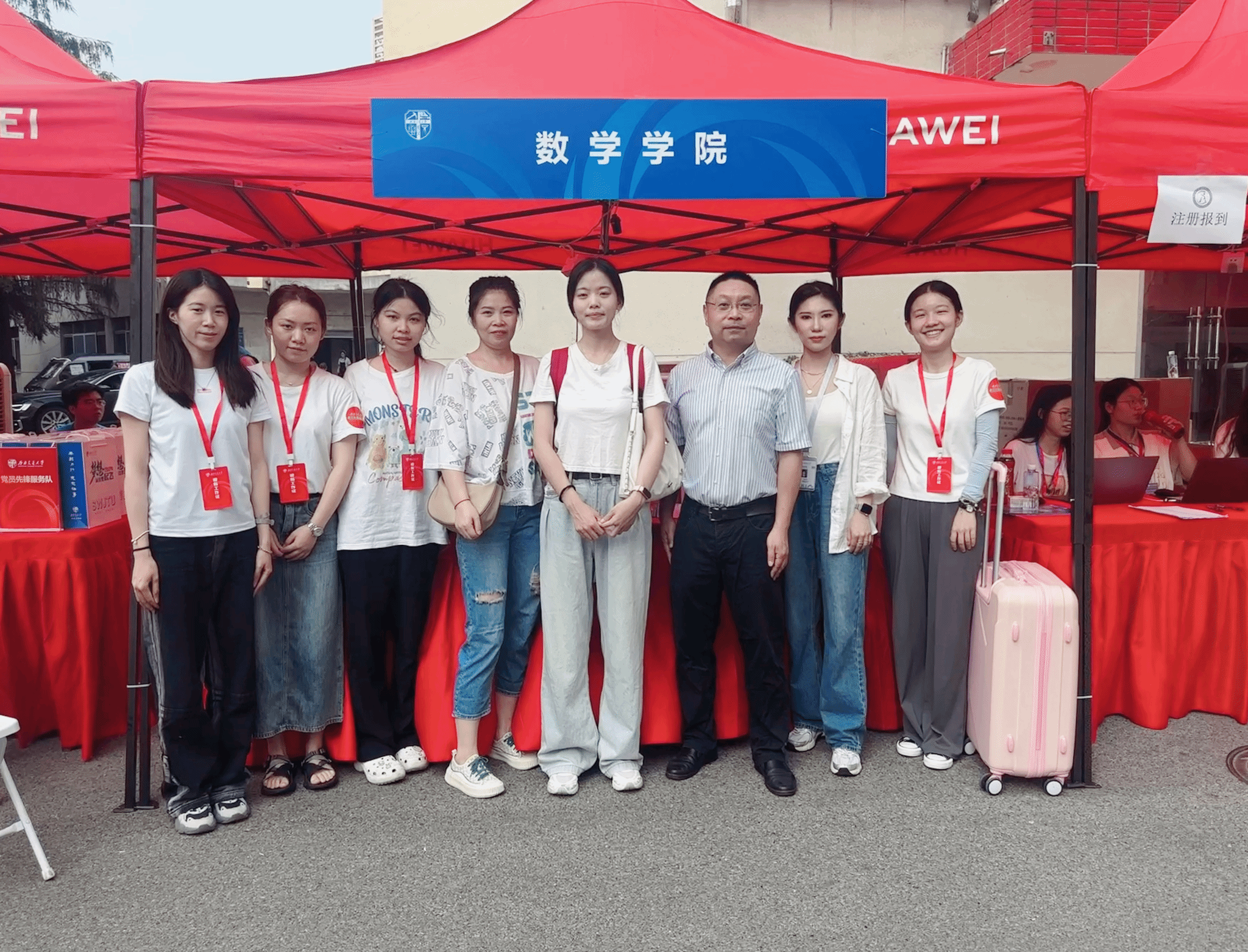 2024级本科生新生辅导员吕薇、谭湘怡,研究生新生辅导员盖少通带领着志愿者们提前来到迎新点完成各项准备工作,一切都在有条不紊地进行。