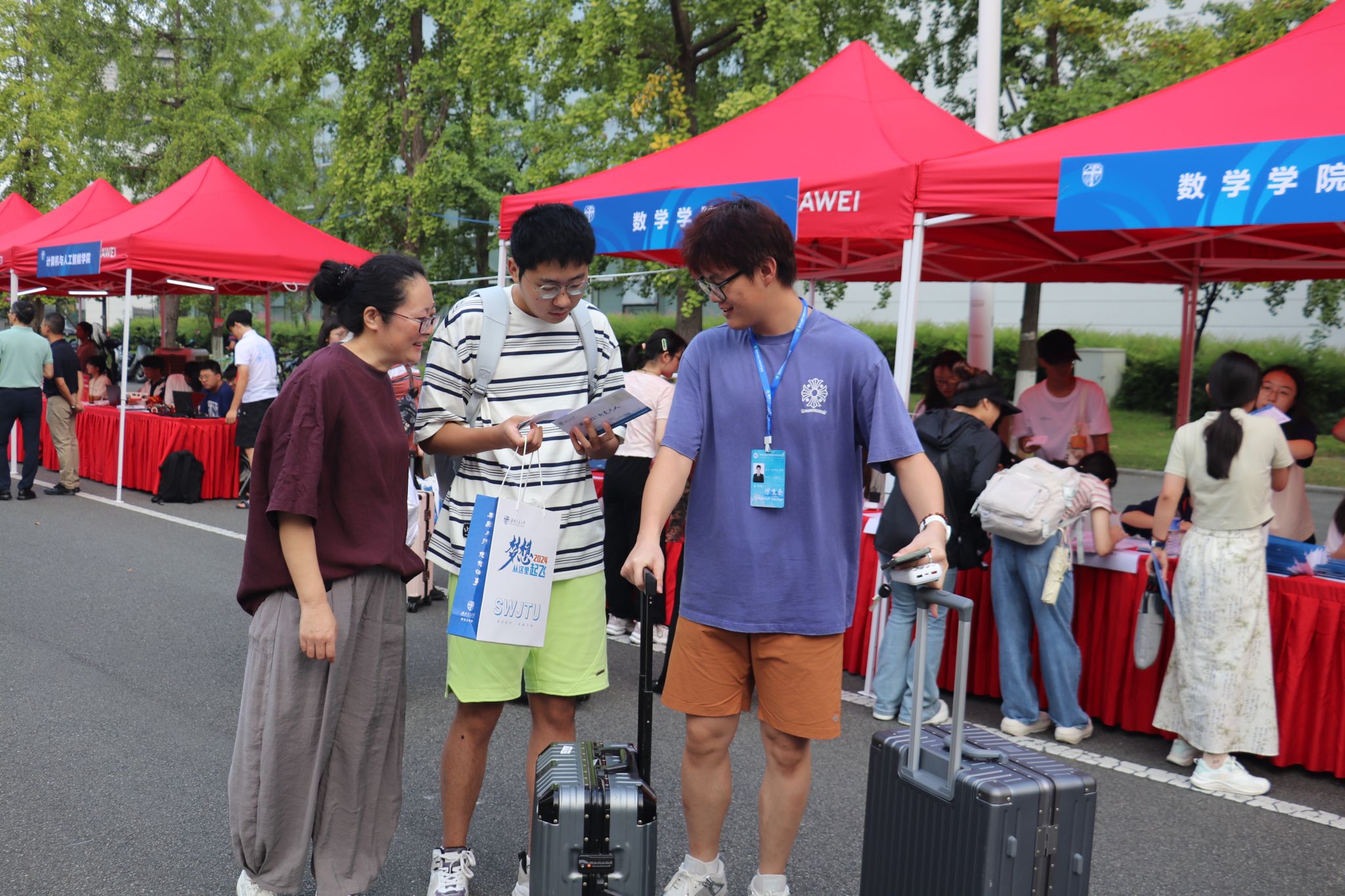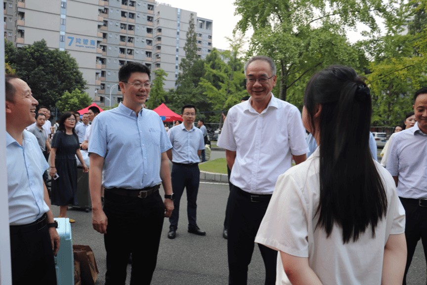 上午8时,学校党委书记余敏明、校长闫学东、副书记高平平,学院党委书记徐革、院长杨晗、副书记黄祥等领导来到了本科生迎新现场,向师生致以亲切问候,并对新交大人寄予厚望,鼓励大家在新的起点上追求卓越,勇攀学术高峰。