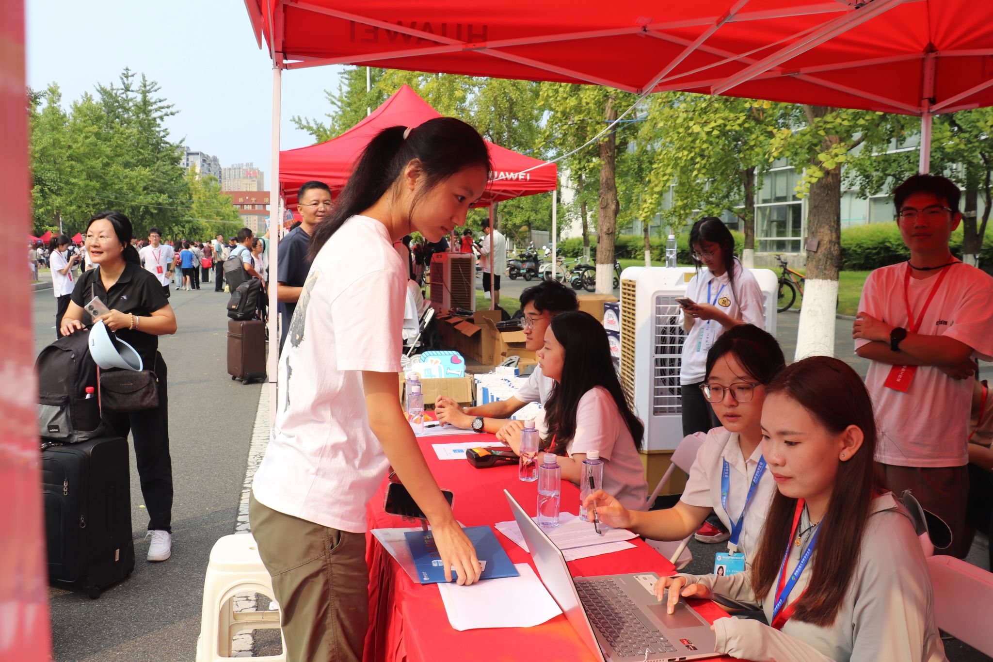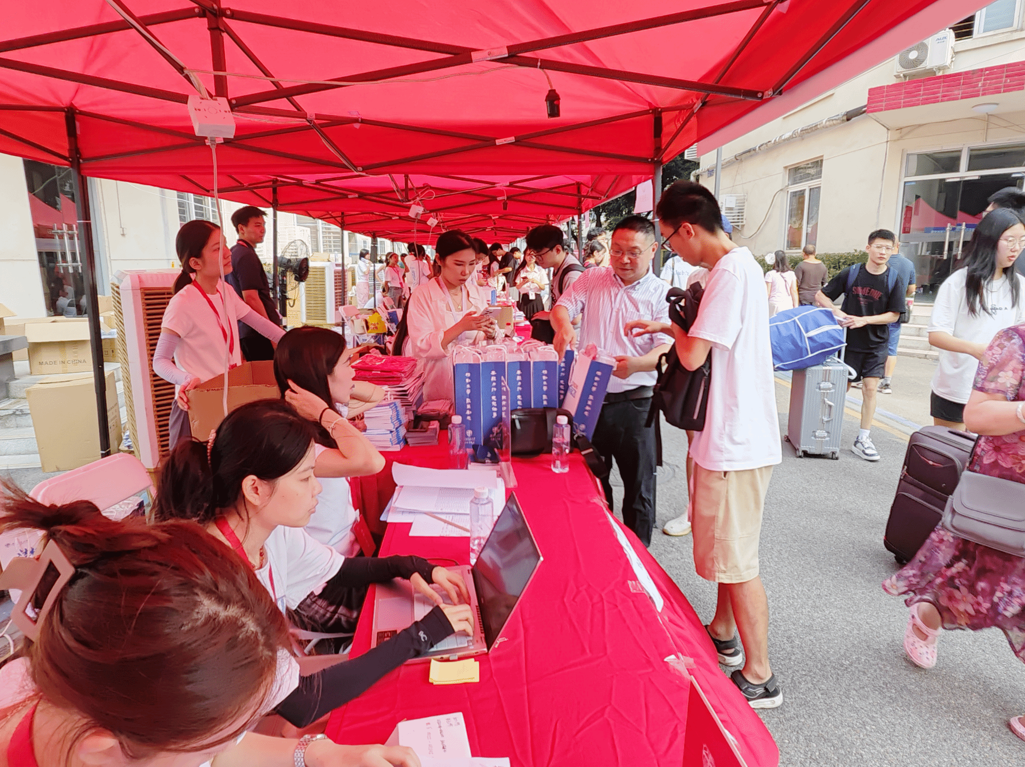 迎新现场,各学生组织与协理员积极响应号召,化身为最可爱的志愿者,他们穿梭在校园的每一个角落,用热情和耐心为新生提供指引和帮助。从核验信息、领取新生大礼包到引导入住宿舍,每一个环节都充满了他们的身影。