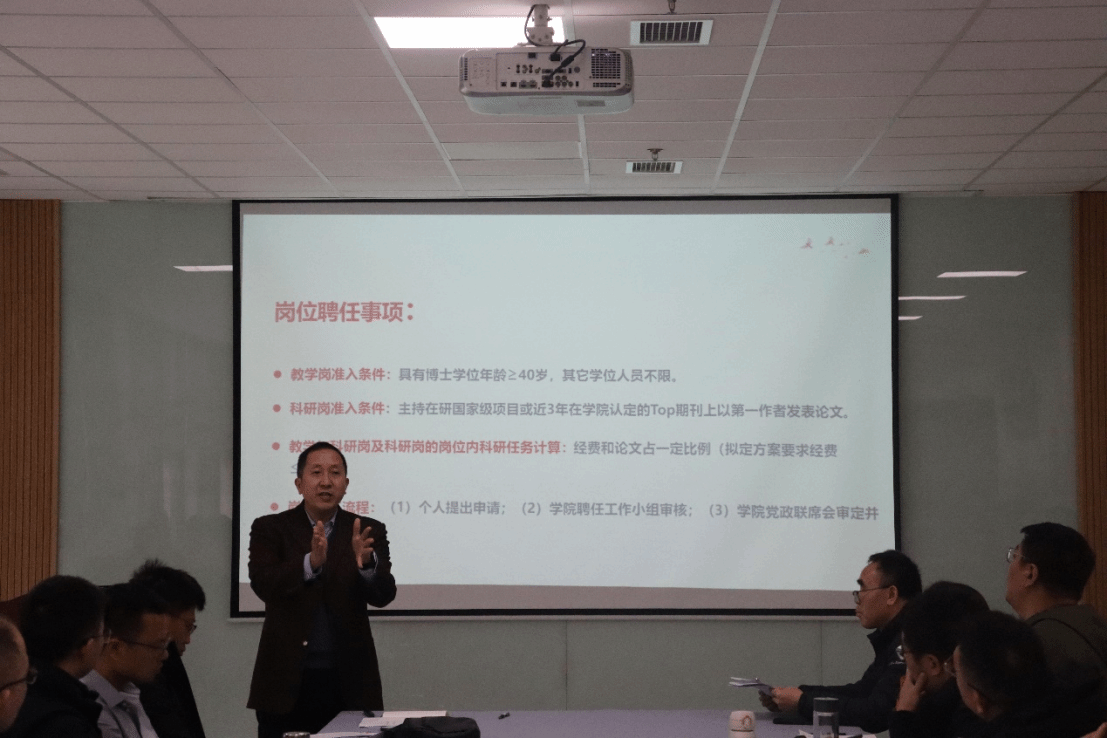 会议最后,杨晗院长进行总结发言,并提出三点要求,一是:提高政治站位,深入理解国家及学校的相关政策,确保在教学、科研以及社会服务方面全面发展;二是:聚焦高质量发展,不要只谈苦劳,要做成事,做好事,践行学院岗位聘任设置的初衷;三是:做好事,办实事。学院的发展离不开每一位教师的共同努力,大家要按照学院的指导思想,齐心协力做好教学、科研工作,共同推动学院各项事业的蓬勃发展。