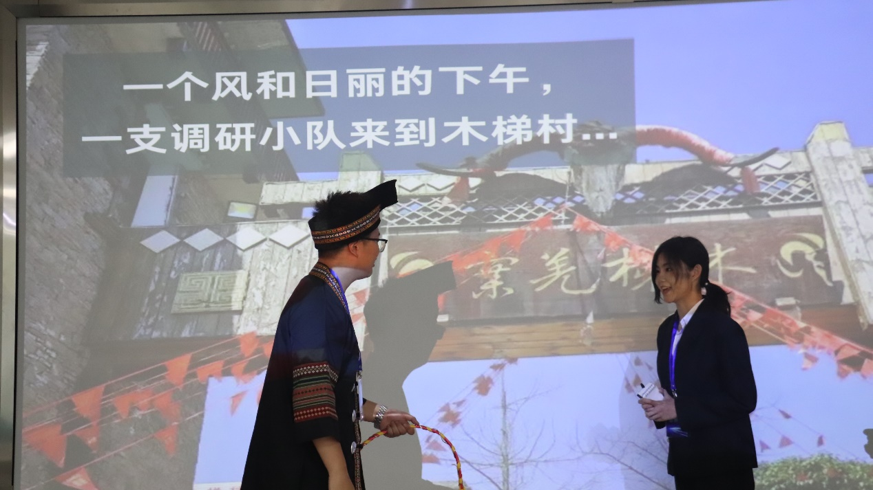 各参赛队伍围绕川渝本土乳制品企业、“天使餐厅”、家政服务、老旧小区改造、社区商业、自贡非遗彩灯、低空物流、留守儿童短视频沉迷、惠农果蔬专线、残障文创产品、青年网约车工作者劳动权益保障、自贡灯会、成都养老模式对智能化产品需求的机会点、中药养生茶饮、非遗蜀绣、成都夜经济等热点问题展开调查研究,在答辩中借助多媒体、介绍册、相关文创产品等工具,通过PPT、视频、情景演绎等形式,多维度、深层次地展示了他们的调查过程与研究成果。展示过后,评委老师从选题角度、调查群体、数据收集与分析、模型选择、成果转化等方面进行提问并给出了相关意见。最终14支队伍从中脱颖而出,获得了此次国赛总决赛的入围资格。