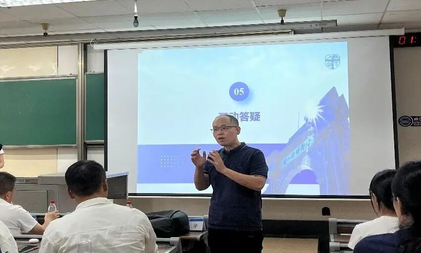 杨洋围绕“为什么读研?”“读研过程中需要做什么?”“怎样成为一名合格的研究生?”三个核心问题,详细介绍了硕士研究生和博士研究生的培养方案,引导同学们明确清晰的学习目标与规划。杨洋强调,研究生应学会自主学习,积极参与科研项目和学术交流,主动培养自己提出问题、思考问题和解决问题的能力,提升自己的综合素质。同时,杨洋还提醒同学们严格遵守学术规范、杜绝学术不端。