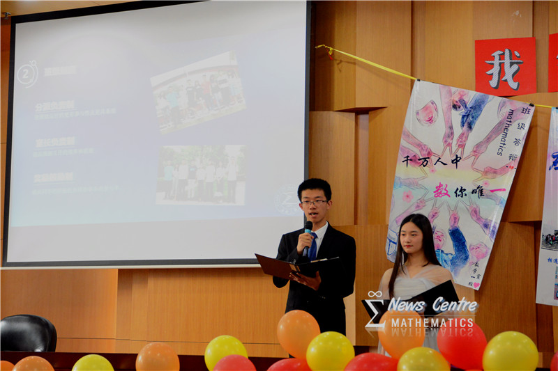 首先主持人为大家介绍了答辩的规则以及评分标准。第一个出场答辩的是统计一班。班长王朔作为答辩人,将班级口号“脚踏实地,眼望前方;志在心中,开创辉煌”的涵义贯穿其整个答辩过程。而充满活力的篮球赛、迎新晚会和拜访养老院等活动,都展示了班级独特的风采。接下来统计一班用告白气球的歌声演绎青春里美妙的相遇,之后的海草舞也展示了班级的无限活力。班级展示结束之后,评委老师建议在以后的班级建设中多开展与学科竞赛有关的团日活动。