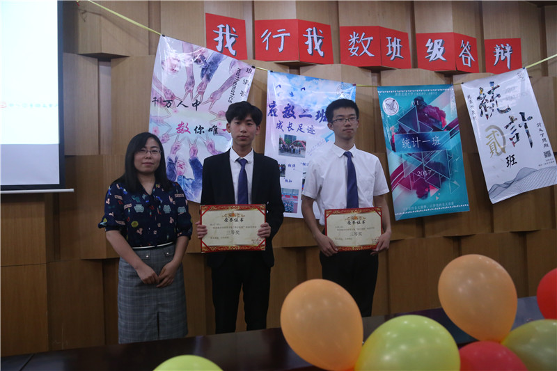 答辩会进入尾声阶段,主持人公布了此次答辩结果。一等奖由数学一班获得,统计二班赢得二等奖,三等奖则归属数学二班和统计一班。