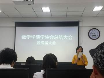 学生会主席高炅学姐进行述职总结。高炅学姐讲述了大学三年在学生会的感悟和收获,同学们从中获益良多。之后,主席团的其他成员以及各位部长们上台进行了这一年在学生会的述职总结。或认真严谨,或活泼生动,将自己在学生会中的工作展现得十分全面。