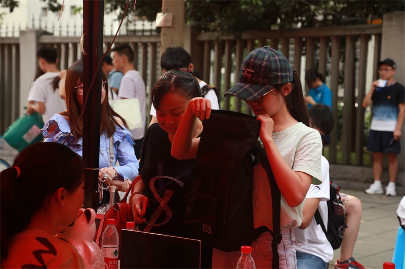 29日一大早,钟老师和学院的学生干部们就来到了学院的迎新点进行准备工作。随着7:15第一位新生办理手续成功,迎新场面开始变得热闹起来。负责扫描和发放物品的干部们有条不紊地进行着工作,效率很高,为新同学们省出了不少时间用来前往寝室整理行李。负责送新生到寝室的学生干部们也很热情地介绍了一些刚入学时需要注意的事项以及学院的概况。学院党委副书记杨育鸿老师和团委书记邓思然老师也来到迎新现场指导工作,并亲切询问了新同学的情况。