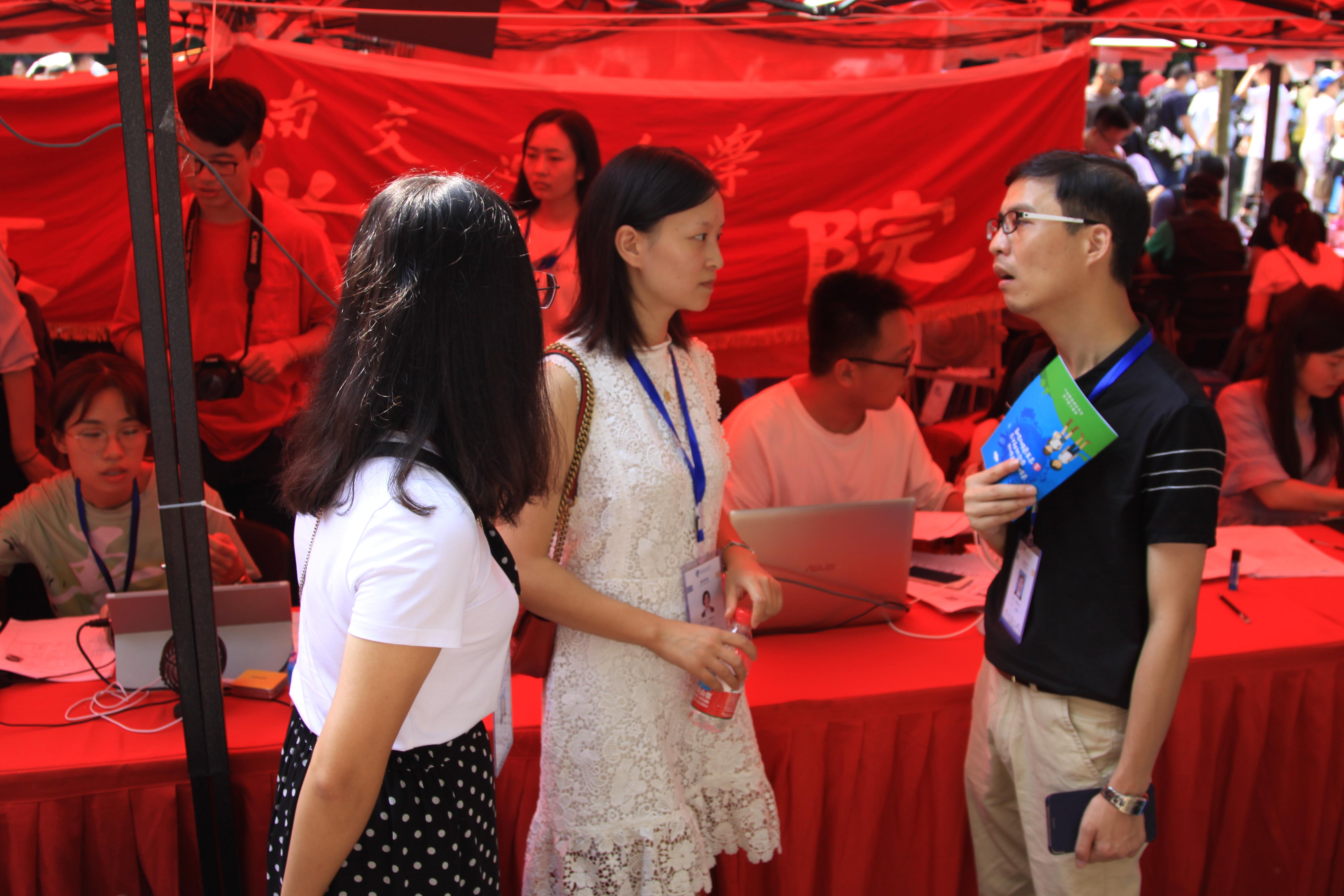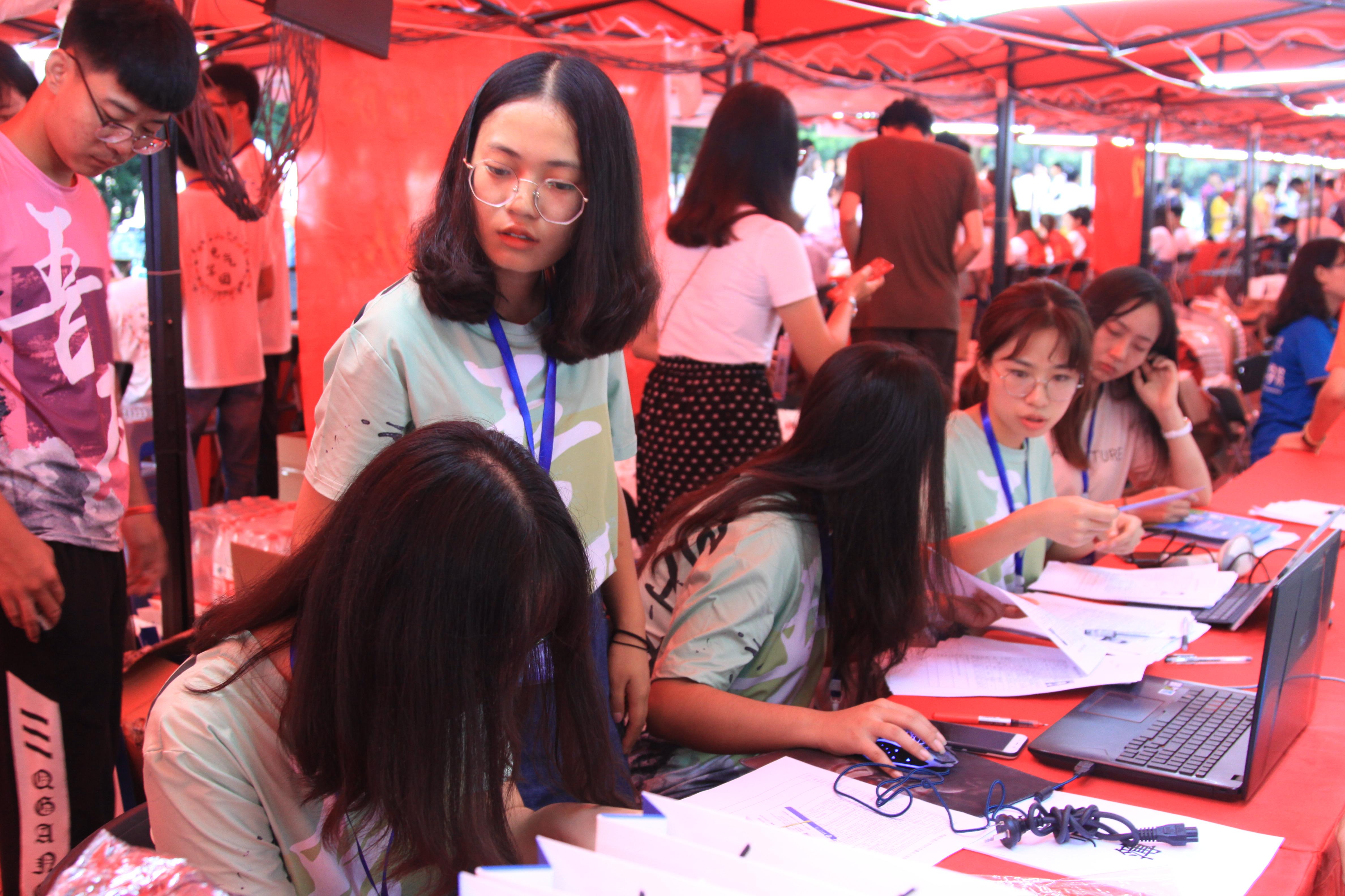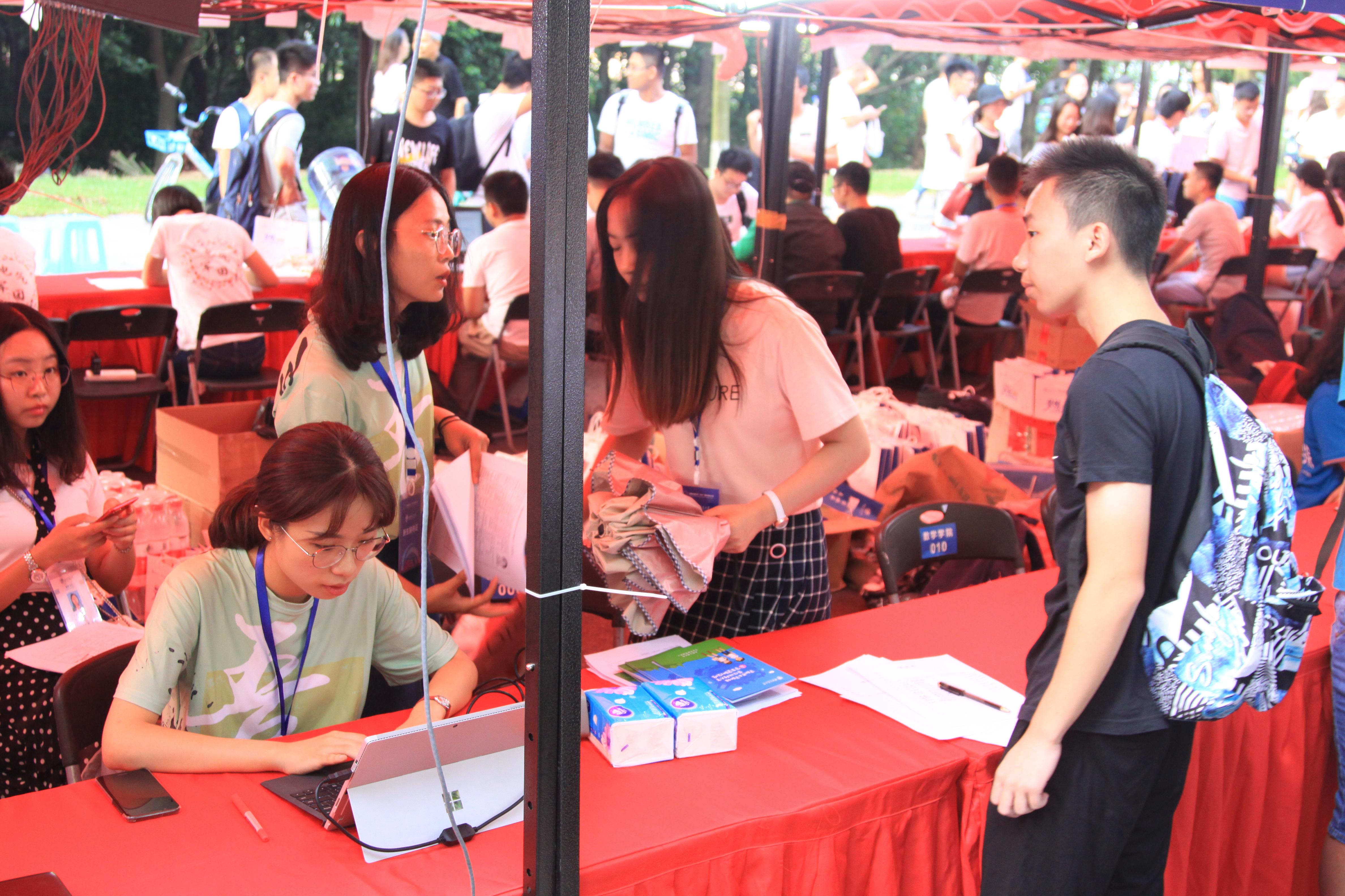 研究生会以及本科生四大学生组织的主席和部长担任迎新志愿者。首日上午,志愿者们即利用极高的工作效率帮助近40名研究生新同学和110位本科生新同学成功办理手续并入住学生寝室。接下来的时间内,志愿者们依旧热情不减地工作,为新同学和家长们展示了91吃瓜