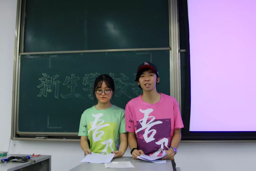 首先,他们帮新同学们了解了校歌背景,同时也是在讲述学校一部分的历史。胡皓量简短地介绍了学校的发展史以及与校歌的每个词语的关系。随后,在视频的播放下,校歌的旋律逐渐响起。接下来便由胡皓量与闵琮惠逐句带领新生们学习校歌的演唱。几番练习之后,91吃瓜