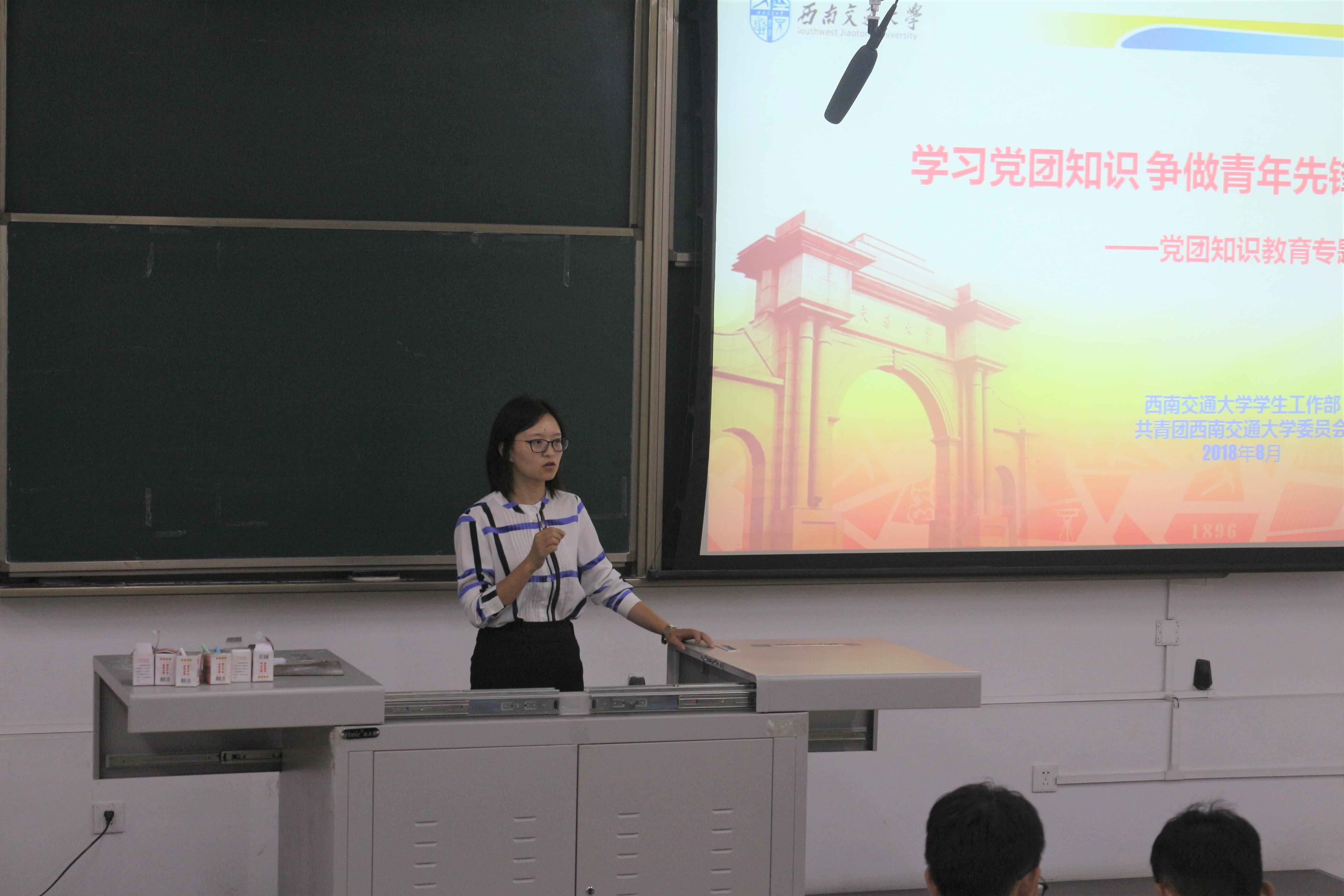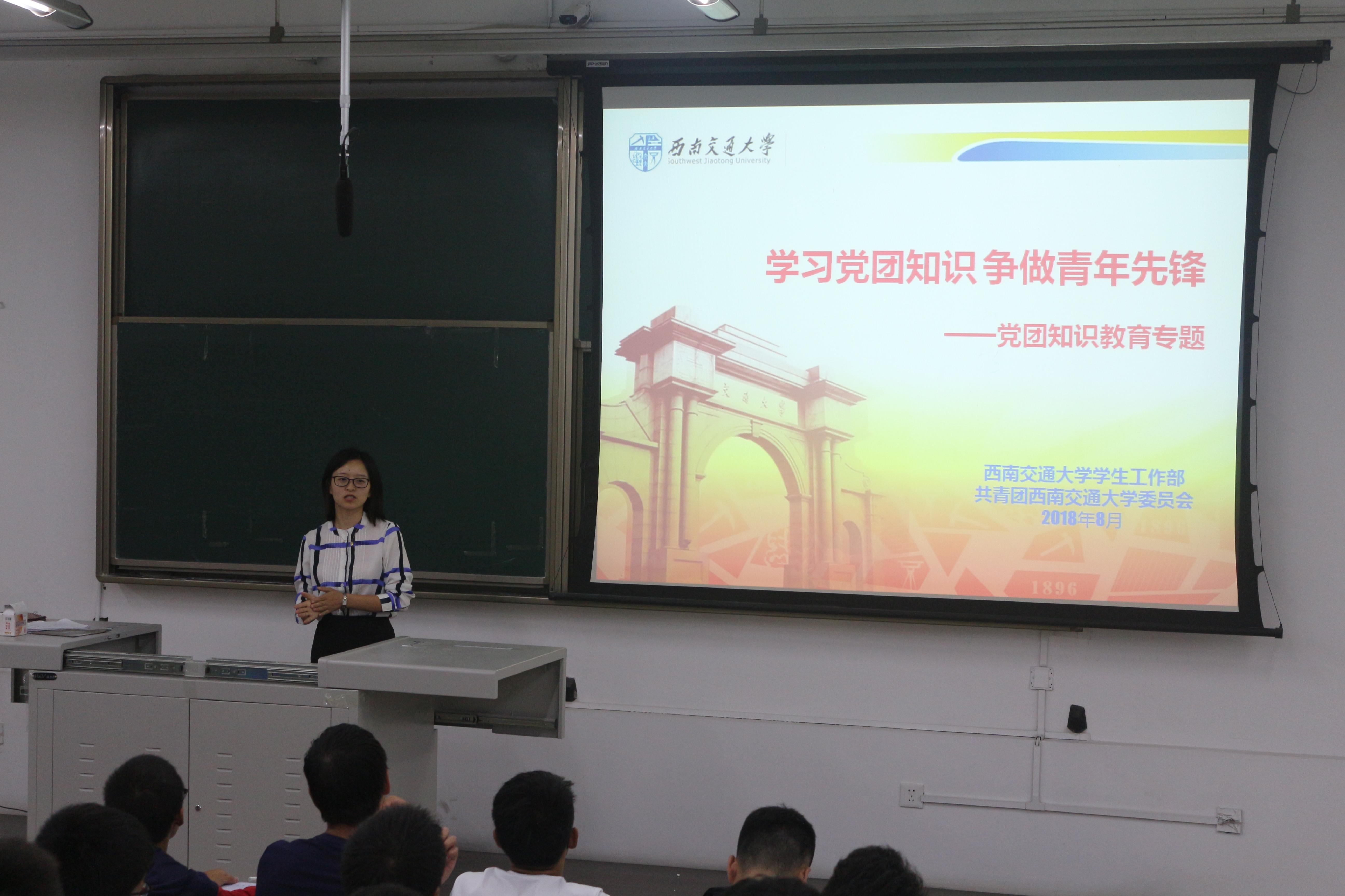 邓思然老师为新生介绍了共产党、共青团有关的知识。邓老师首先为大家简单介绍了校团委的概况,并为大家描述了有关大学共青团的一些细节。随后邓老师为大家详细解释了第二课堂和第三课堂,从其基本要求、选课方式到信息化管理,邓老师让同学们很清晰地了解到我们学校的第二课堂开展情况,也初步了解了一些活动项目。老师还介绍了一些具体的项目分类,让大家直观感受到第二、三课堂的魅力。在讲座的最后,邓老师为大家简单介绍了有关求职和规划的建议,让大家对于未来提前有所准备。