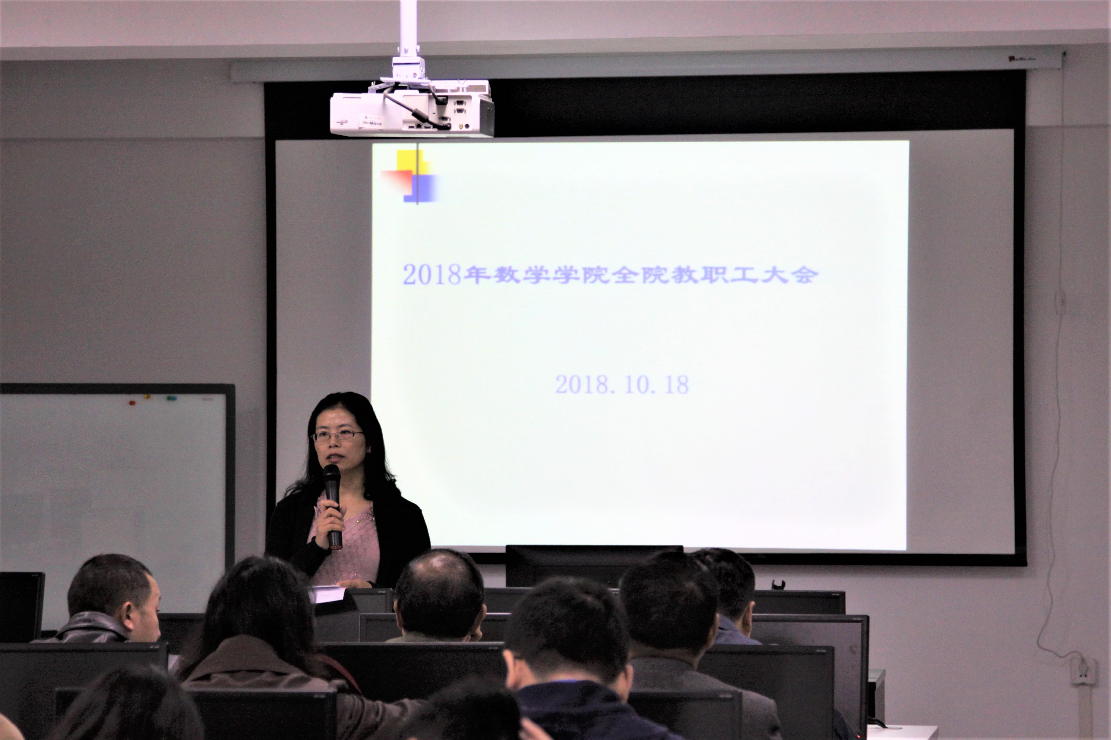 会议开始,副院长潘小东报告了本科教学及国际化近期工作安排,包括关于加强期中考试工作、本科教学期中检查安排、全国大学生数学竞赛监考安排、校级教材建设研究课题立项申报和对外学术交流合作计划等工作。