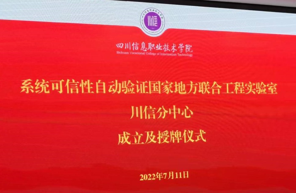 2022年7月11日下午,系统可信性自动验证国家地方联合工程实验室在四川信息职业技术学院成立分中心,简称系统可信性自动验证国家地方联合工程实验室川信分中心。