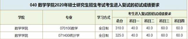 第一志愿报考我院各专业非专项计划的考生,初试成绩达到下表中对应专业的成绩要求,方才具备复试资格。