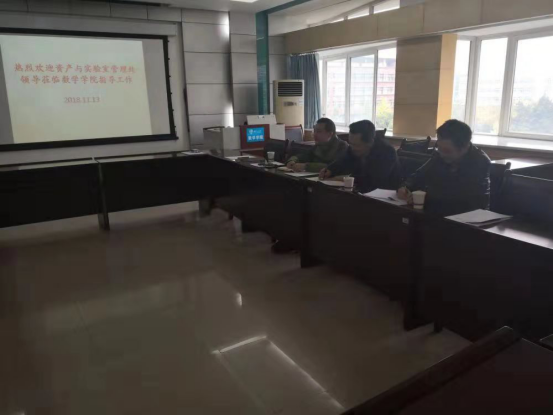 On November 13, 2018, director zhong chong, assistant director guo jian and deputy chief deng yuanxi, deputy chief of housing resources department conducted a survey on the work of the assets and laboratory of the school of mathematics. Xu ge, secretary of the party committee of the school of mathematics, li zhihui, vice President of the school, Yang han, wang lu and related staff attended the symposium.