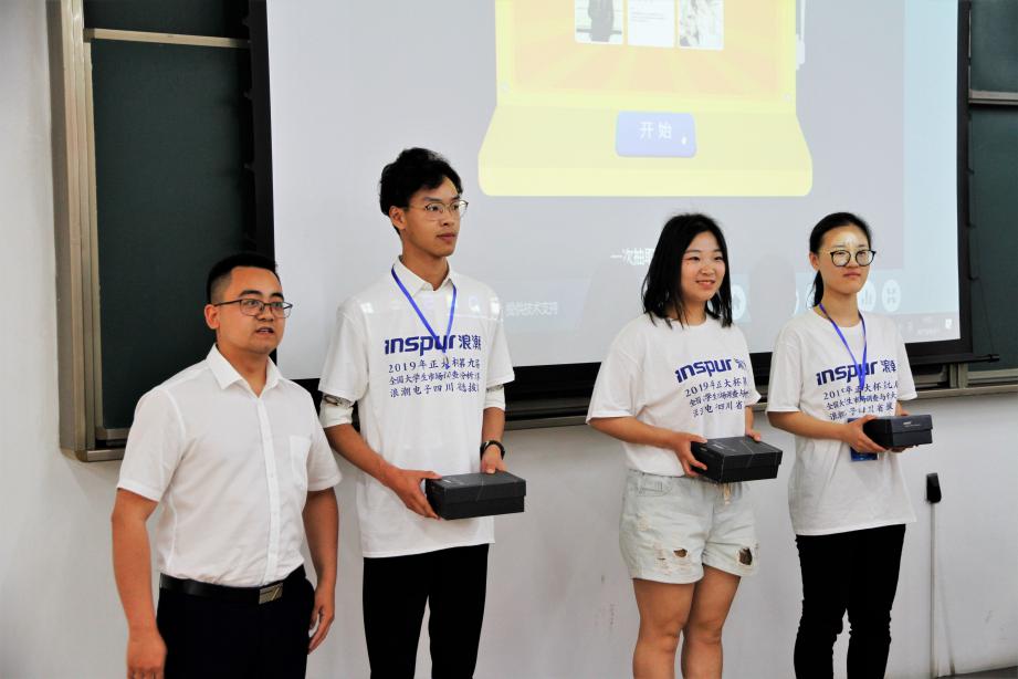 随后进入抽奖环节,由浪潮集团的唐强经理进行现场抽奖,并为获奖的同学们颁发赞助方精心准备的礼品。